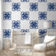 Stijlvolle blauw en wit bloemenmediterrane Tegel Behang