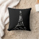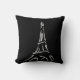 Een eenvoudige en stijlvolle schets van de Eiffeltoren in wit accentueert dit zwarte kussen.