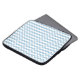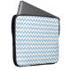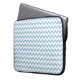 Een stijlvol sleeve om uw laptop te beschermen, met een chevron-patroon in lichtblauw en wit.