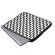 Een stijlvolle hoes om je laptop te beschermen, met een chevronpatroon in trendy zwart-witte zigzag.
