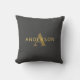 Stijlvolle naam en monogram | Goud en donkergrijs Kussen