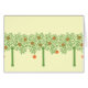 Een gestileerd afbeelding van een groene boom met ronde oranje vruchten.