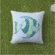 Voeg een beetje zomerkleur toe aan uw buitenleefruimte met dit lichtblauwe schimmelbestendige kussen, met een leuke blauwe, groene en witte vis met meerdere patronen. Pas en voeg wat tekst toe om dit uw te maken.