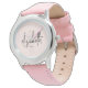 Stijlvolle Roze Modern Script Meisjes Monogram Naa Horloge