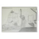 Deze tekening is voorzien van een laars, een vogelkooi, drijfhout, een lamp en andere items.