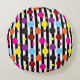 Stippen en strepen. Kleurrijke polka stippen en zwart-wit gestreept patroon rond kussen.