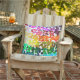 DIGITAAL GEMANIPULEERDE FOTO RESULTEREND IN DIT HELDERE EN VROLIJKE, VEELKLEURIGE BUITENKUSSEN: ROZE. MAGENTA. RODE, ORANJE, GELE, BLAUWE, GROENE, ZWARTE EN WITTE KLEUREN.