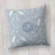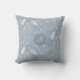 Dit schattige boho stijl gooi kussen beschikt over een patroon van met de hand getekende veren, bloemen en paislies in wit op een stoffige blauwe achtergrond met lichtere en donkerblauwe accenten - personaliseren met haar monogram - door katz_d_zynes