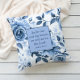 Stoffig Blauw Wit Bloemen Christelijk Bijbelvers Kussen