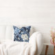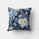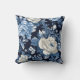 Mooi decoratorkussen met stoffige blauwe en witte rozen op een marineblauwe achtergrond. Perfect voor uw winterhuis decoreren.