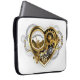 Mechanisch, volumetrisch, stoomhart met drukmeter, stalen en gouden tandwielen op witte achtergrond. Stoomstijl.