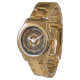 Antieke, fantastische horloges met gouden en koperen tandwielen op een bruine, roestige achtergrond. Stoomstijl.