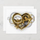Mechanisch, volumetrisch, stoempunkhart met drukmeter, stalen en gouden tandwielen op witte achtergrond. Stoompunkstijl.