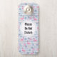 Stoor alsjeblieft geen deurhanger met een patroon met een leuke sombui. Roze flamingos en ananas, ingesteld op een lichtblauw gestreept patroon met bladeren en harten overal rond.