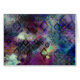 In dit meerkleurige abstracte kunststuk zijn donkere stormen wolken van de waterverf die zijn gekleurd met open, grijze zwarte diamantcontouren in verschillende maten.