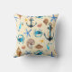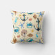 Een zomers tropisch themapatroon gevuld met items van het strand. Krabben, schelpen, zeesterren en ankers. Crème en blauw kleurenschema.