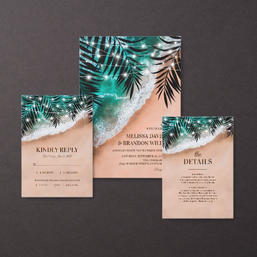 Strand Palm bladeren foto bruiloft dank u kaart