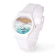 Een stoer, trendy, modern sportpolshorloge met een strandfoto binnenin die strandvibes leest.