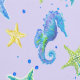 Duik in de diepten van de grillen met onze 12" GROTE Lavendel paarse achtergrond met Zee Schildpad, Zeepaardje en zeesterren en waterige bubbels wallpaper collectie. Met een charmant ensemble van kleurrijke zeester, over een kleurrijke lavendel achtergrond, allemaal prachtig geschilderd in waterverf. Perfect voor het toevoegen van een speelse touch aan de slaapkamer van een kind of een kustgeïnspireerde badkamer of woonkamer. Audrey Jeanne's artwork is beschikbaar voor licenties via MHS Licensing.