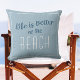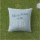 Cute gegolfde marine ontwerp met "Leven is beter op het strand" in leuk wit & blauw lettertype & script op een lichte kustblauwe achtergrond omlijst in een stijlvol wit frame. Kleur van achtergrond en lettertypekleuren zijn gemakkelijk aan te passen in de ontwerp tool sectie. De achterkant is effen blauw en komt overeen met de kleur van het blauwe lettertype. Perfecte huisdecoratie voor dat vakantiehuis aan het strand!