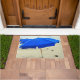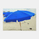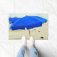 Deze deurmat is voorzien van blauwe strandparasols en meeuwen in het zand.