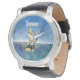 Pas dit leuke nieuwe horloge aan met een cartoon illustratie van een visser in een surrealistische en vreemde situatie. Voeg jouw naam toe of voeg iemand anders toe om als geschenk te geven! Mooie blauwe achtergrond voor water en lucht rond dit ontwerp voor een leuk en mooi ontwerp. Dit leuke cartoon-visthema is perfect voor hengelaars.