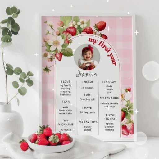 Strawberry Berry Eerste 1e verjaardagsfeestje Uitnodiging Bijpassende items beschikbaar.