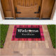 Verhoog uw entree met onze betoverende aardbei rode en roze plaid gepersonaliseerde welkomstmat, met een leuke golfbal op een roze t-shirt ter vervanging van de O in Welcome. Verkleed je entree met een welkomstmat met golfthema. Het perfecte cadeau voor de fanatieke golfer, of 19e hole golfbaan clubhuis.