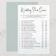 Een weddenschapsschoen. Eenvoudig en leuk spel met het gelukkige paar en hun gasten. De titel 'Wedding Shoe Game' staat in handgeschreven kalligrafie met casual elegantie. Een ontwerp dat minimaal is en zwart-wit is, op een witte achtergrond is afgewerkt, met een zachte waterverf en een zacht groen kleurenpalet aan de achterzijde. Eenvoudig modern en elegant ontwerp om te coördineren met veel trouwdouchethema's. Blader naar mijn collectie voor overeenkomende objecten of stuur me een bericht om de sjablonen te creëer die je nodig hebt.