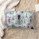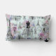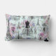Een pastelblauwe strepen met Eiffeltoren en een zwarte mannequin-roze lavendercollage voor spoelroze spoelen. Een roze roze roze roze roze roze vormgeving op gestreepte achtergrond.