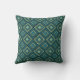 Deze werpkussens hebben een kunstdecoontwerp van diamantvormen met diagonale lijnen en gekleurde diamanten in twee tinten blauwgroen.