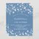 Roze blauwe achtergrond, versierd met witte sterren. Personaliseer en en jouw naam en partijdetails. Achterzijde: stoffige blauwe achtergrond.