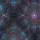 Veelvoudige instanties van een multi-kleur, vrij ingewikkeld fractal afbeelding in een regelmatige compensatieserie; op een donkere achtergrond.