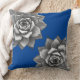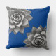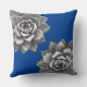 Dit gooi kussen pronkt met twee grijze vetplanten geplaatst op een saffier blauwe achtergrond.
