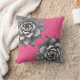 Twee grijze vetplanten zijn geplaatst op een hete roze achtergrond op dit prachtige kussen.