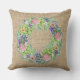 Steek uw meubels op met deze gooiende kussen geadorneerd met een lelijke kreet gemaakt van succulenten, roze, blauwe en perzikbloemen en aanrakingen van paarse loof.