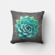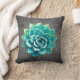 Een aqua succulent op een humeurige grijze achtergrond siert dit kussen.