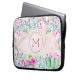 Dit cactus computer sleeve is voorzien van een modern floraal ontwerp met geometrische monogram en waterverf cactus en vetplanten planten en gebladerte met faux roze marmeren achtergrond. Personaliseer het met een initiaal.