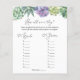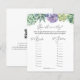 Vrijgezellenfeest spelkaart met een waterverf groene en paarse succulenten. Een leuke manier om met douchegasten te interageren om de leeftijd van de bruid en de bruidegom in de foto's te raden. Voeg een code QR aan de gasten van het show de foto's toe.