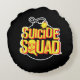 Geel en Oranje Suicide Squad-logo in een zwarte bom op witte en zwarte achtergronden.