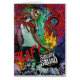 Bekijk deze Diablo-tekengraffiti-kunst met Diablo met een vlam in zijn hand, tegen de achtergrond van grimmige luiers, schedels en bloed.