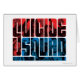 Rood en blauw Suicide Squad logo met tekens die in elke letter worden gezien.
