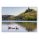 Een familie van ganzen zwemt onder Sugarloaf op een lentedag in Winona, Minnesota.