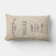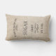 Een modelontwerp van een suikerzak uit de jaren 1800 met een zachte katoenachtergrond.