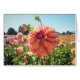 Een mooi uitzicht vol kleuren! Een prachtige dahlia in volle bloei in de zomerzon, met rijen Dahlias op de achtergrond. Tijdens het Dahlia-festival op Swan Island Dahlias in Canby, Oregon.