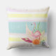 Summer Pastel Stripe, Flamingo, Tropisch Sierkussen. Met de woorden 'Lazy Hazy Crazy Summer' over een blauwe streep en een prachtige lila aan de andere kant met grotere flamingo in waterverf. Eenvoudig verbluffend en perfect voor het strandhuis