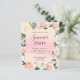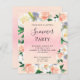 Een roos goud en een wazige roze achtergrond. Verkleurd met grote, waterkleurige bloemen, bloemen in wit, koraal en perzik. Personaliseer en voeg jouw naam en partijinformatie toe. Het woord Summer wordt geschreven met een modern hand geschreven stijlmanuscript. Achterzijde: roos goud, wazige roze achtergrond. Ideaal voor een familieruchting, een buitenshuis, tuin, achtertuin, barbeque, bbq, theefeestje.