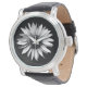 Dit elegante zwart-witte horloge is voorzien van een eenvoudig zwart-wit afbeelding van een zonnebloem. Een mooie toevoeging aan elke klooster.