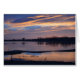 Blauwen en golden van zonsopgang door het meer met silhouetten van eenden en ganzen, maken een mousserende ochtendgloed!