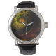 Sunrise Floral Red Abstracte kunstleder met lederen strop met zwarte lederen strop Horloge